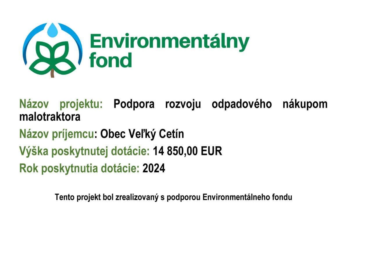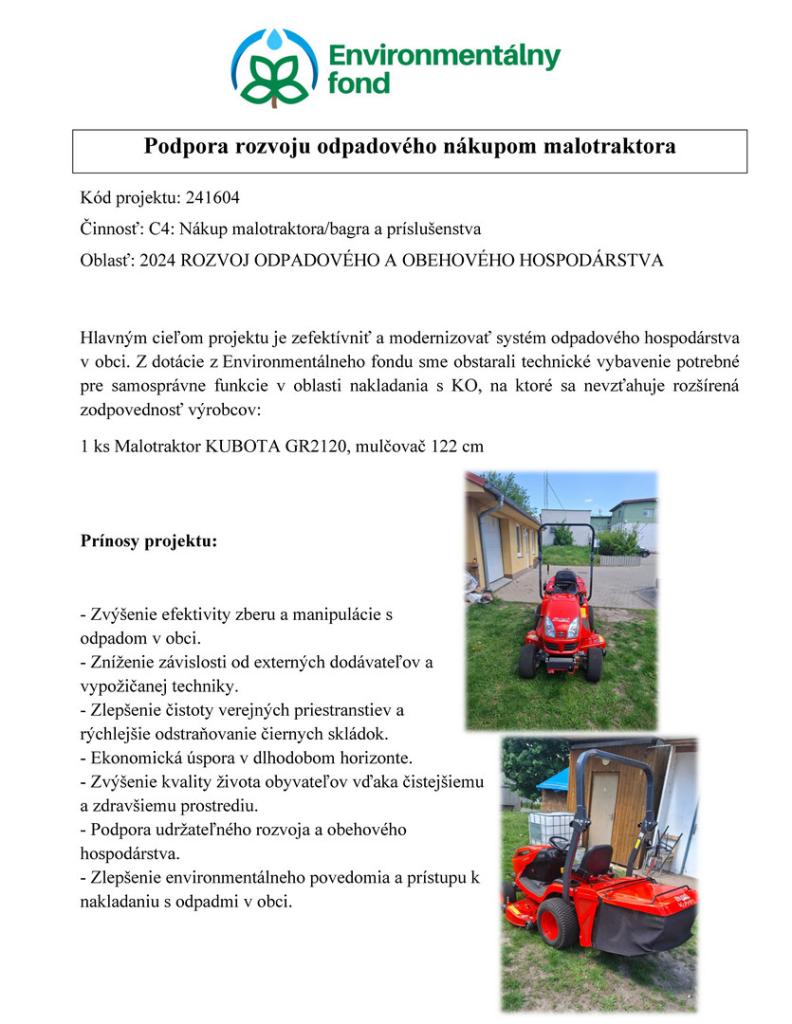 Podpora rozvoju odpadového nákupom malotraktora - Environmentálny fond